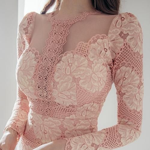 高級感漂う刺繍レースで仕立てた大人かわいいワンピース(キャバドレス・CABARETDRESS)。