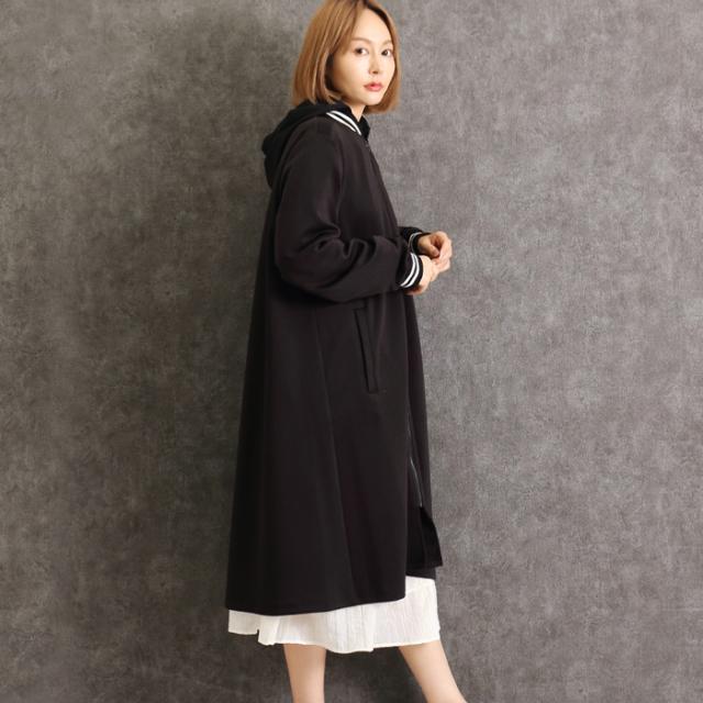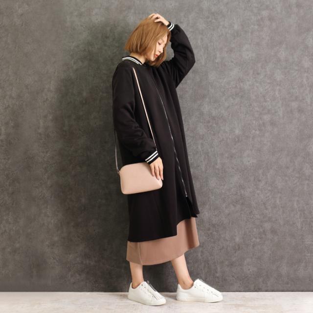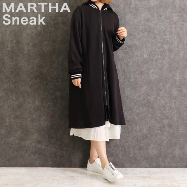 スタジャン ダンボール ワンピース MARTHA マーサ レディース ロング ゆったり 体型カバー ホームウェア ワンマイル おうち着 長袖 L ブラック aw 16873