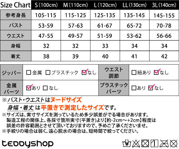●バスト・ウエストはヌードサイズ、身幅・着丈は平置きで測定したサイズです。