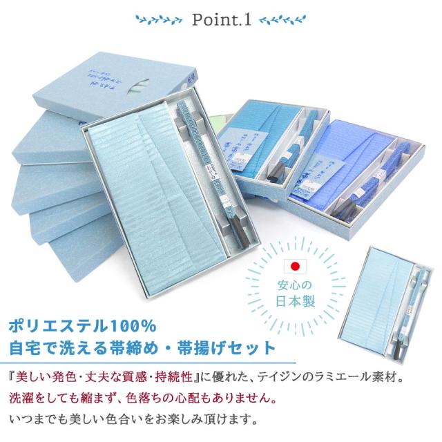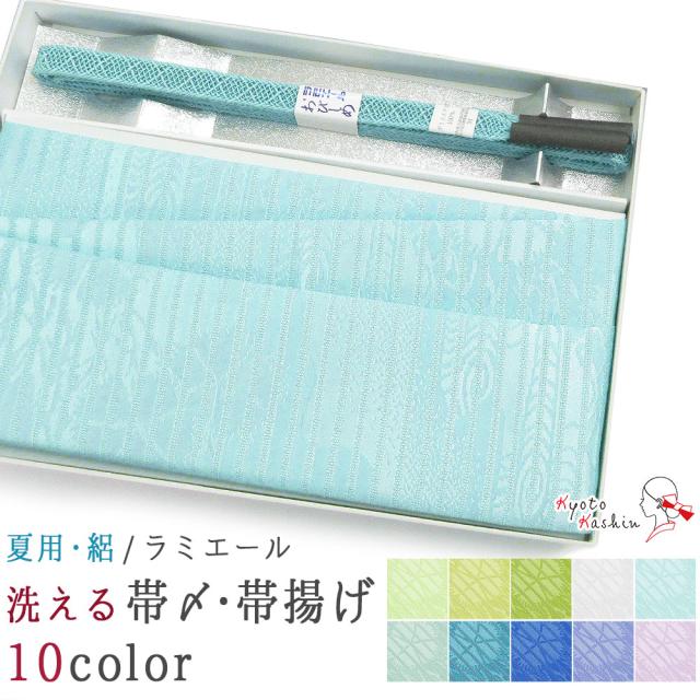 テイジンが開発した、洗えるラミエール素材を使用した『帯締め・帯揚げセット(夏用)』でございます。