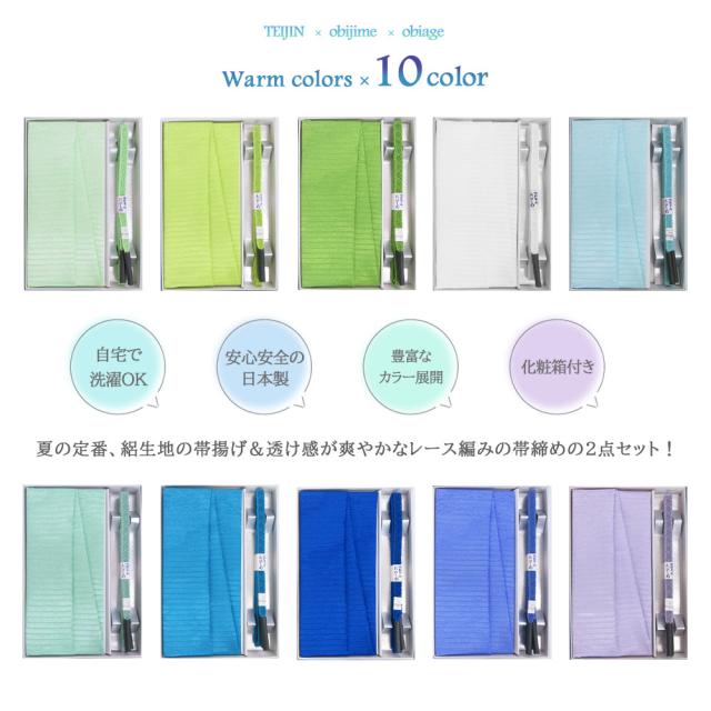 ラミエール 夏用 絽 洗える 帯揚げ 帯〆 セット 撫子柄 レース 無地 ポリエステル100% テイジン素材 縮まず 色落ちしない 日本製 着物 訪問着 留袖 付下げ 小紋単衣 薄物 浴衣 夏着物 帯締め 帯あげ 寒色 青 紫 緑 贈答 ギフト プレゼント レディース お洒落