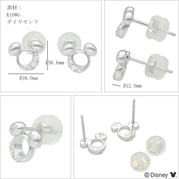ディズニー ミッキー ダイヤモンド ゴールド ピアス ミッキーマウス K10 ホワイトゴールド Disney 公式 ディズニーピアス オフィシャル ブランド レディース グッズ