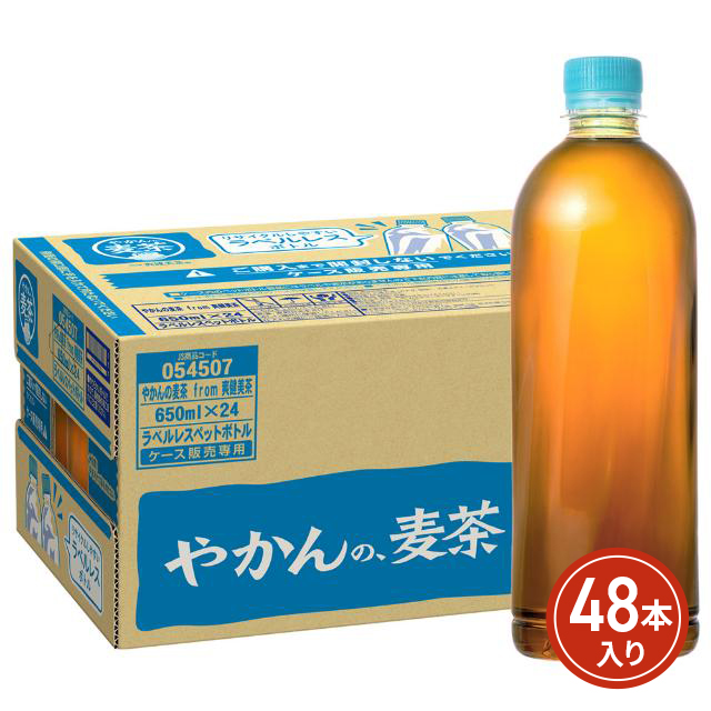 コカ・コーラ やかんの麦茶 from 爽健美茶 ラベルレス 650mL×48本(24本×2ケース)