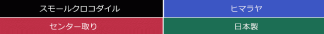 | 素材 | 表側:スモールクロコダイル 内装:スエード調の生地、牛革 |