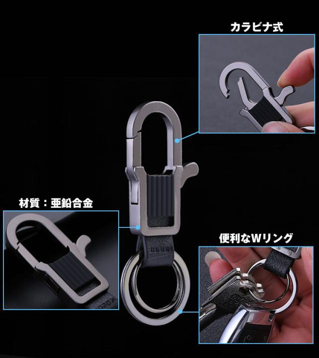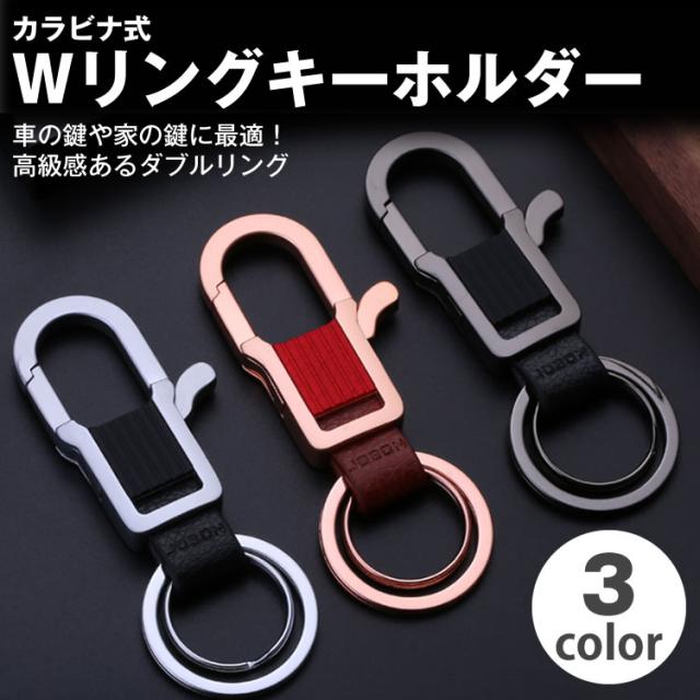 ダブルリング キーホルダー 亜鉛合金 キーリング カラビナフック ファッション デザイン メンズ 男性 鍵 キー おしゃれ 小物 金属製 高級感