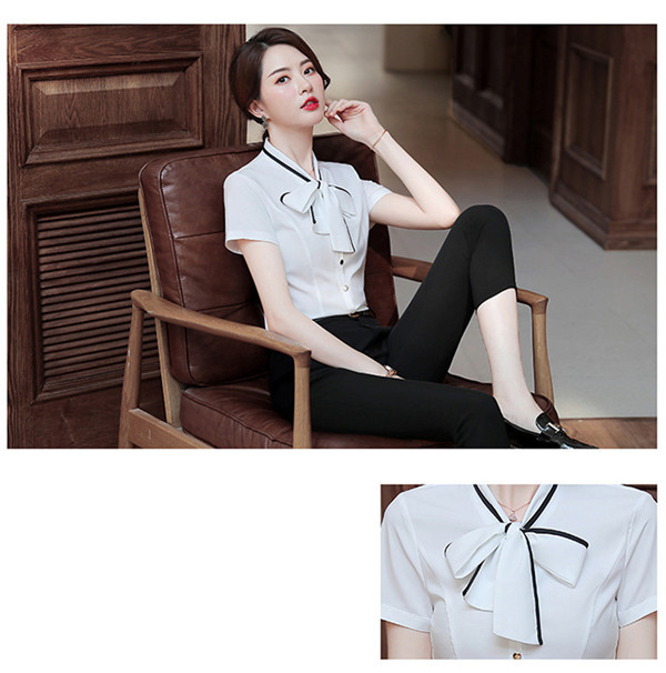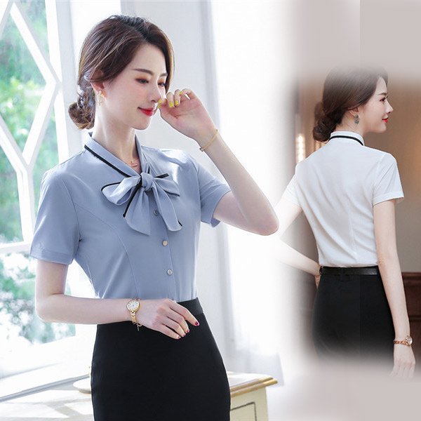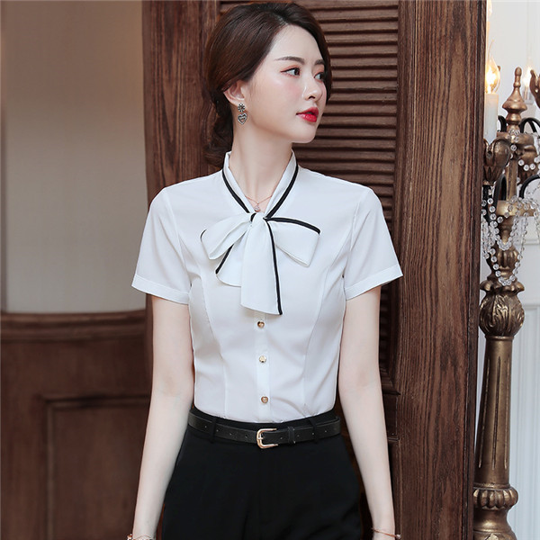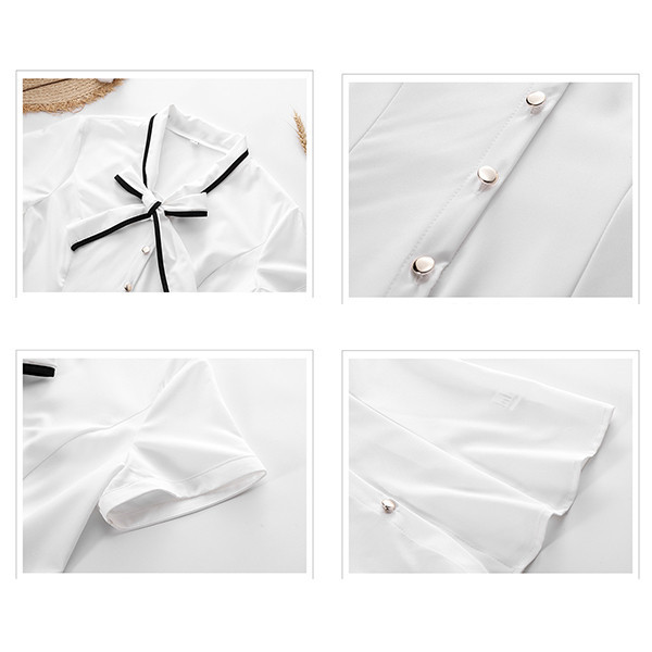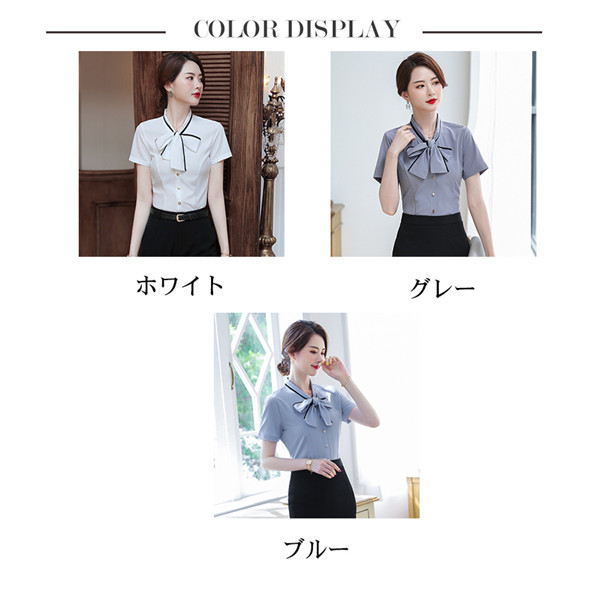 【本日の激短SALE】半袖 シャツ レディース Yシャツ ブラウス トップス ワイシャツ オフィス 通勤 カジュアル ビジネス 薄手 リボン 大きいサイズ 体型カバー シンプル 着回し