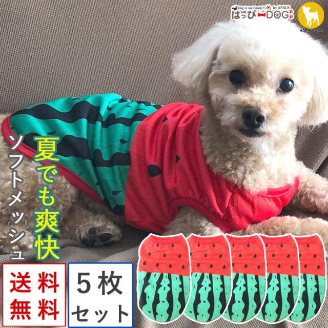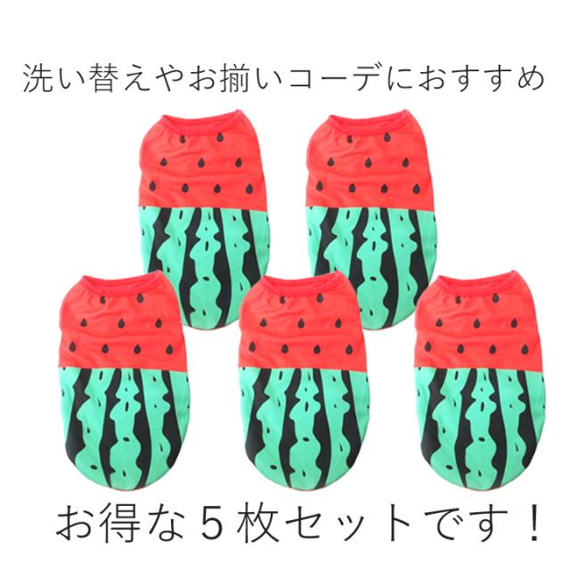 犬 服 犬服 犬の服 夏 春夏 夏用 【5枚セット】トイプードル いぬ 着せやすい タンクトップ 袖なし フルーツ柄 スイカ メッシュ 薄手