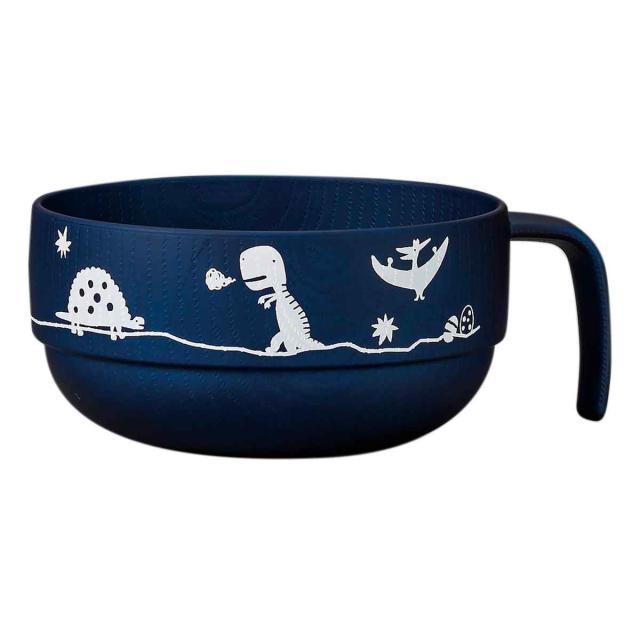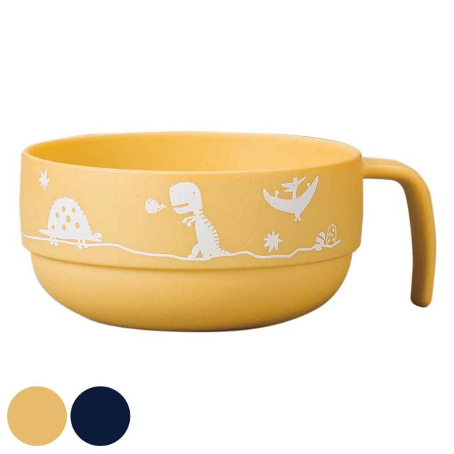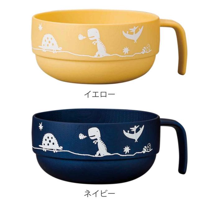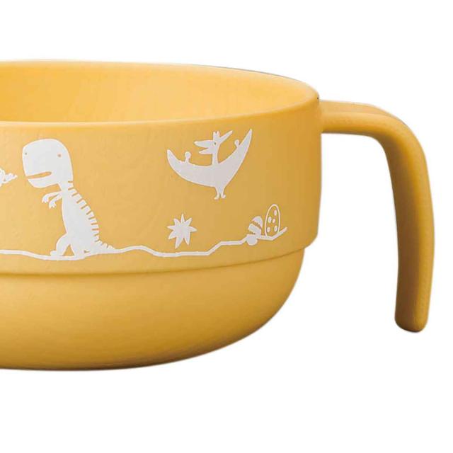お子様の食事にぴったりな軽くて割れにくい木目調のボウルです。ほのぼのとした恐竜のイラストが描かれています。サラダやスープ、ヨーグルトなどに最適なサイズです。深さがあり、持ち手も付いているので、スープカップとしてもおすすめです。