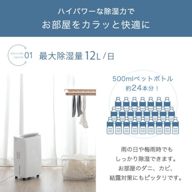 部屋干しでもしっかり乾く 衣類乾燥モード付 除湿機 コンプレッサー 15畳-30畳 12L/日 大容量 タンク 3L 衣類乾燥 除湿器 衣類乾燥除湿機 乾燥機 省エネ 室内干し 小型 ホワイト おしゃれ