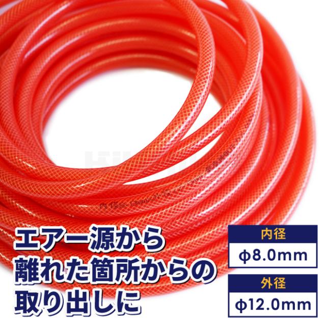 ウレタンエアホース 大口径 10m 内径Φ8.0mm 外径Φ12.0mm エアーホース エアホース 空気ホース 延長 工具:エアー工具 コンプレッサー KIKAIYA