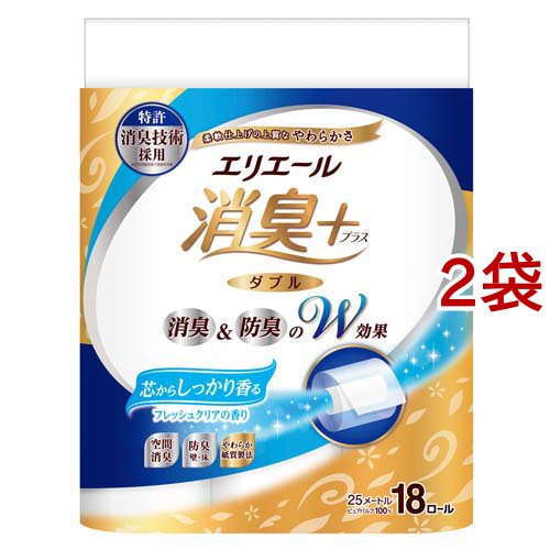 エリエール 消臭+ しっかり香る フレッシュクリアの香り ダブル(18ロール入*2袋セット)[トイレットペーパー ダブル]