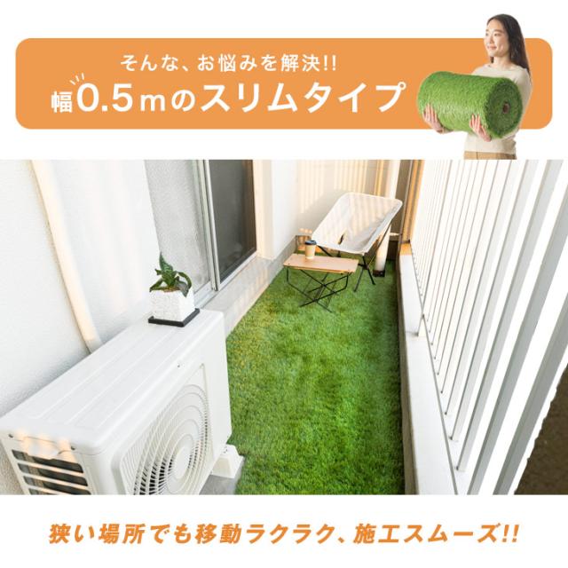 人工芝 スリム幅0.5m 0.5m×10m 芝丈20mm 幅 50cm u字ピン12本 人工芝 ロール グリーン 緑色 リアル DIY 細い 短い 通路 道 バルコニー ベランダ 庭 固定ピン ピン 人工芝生