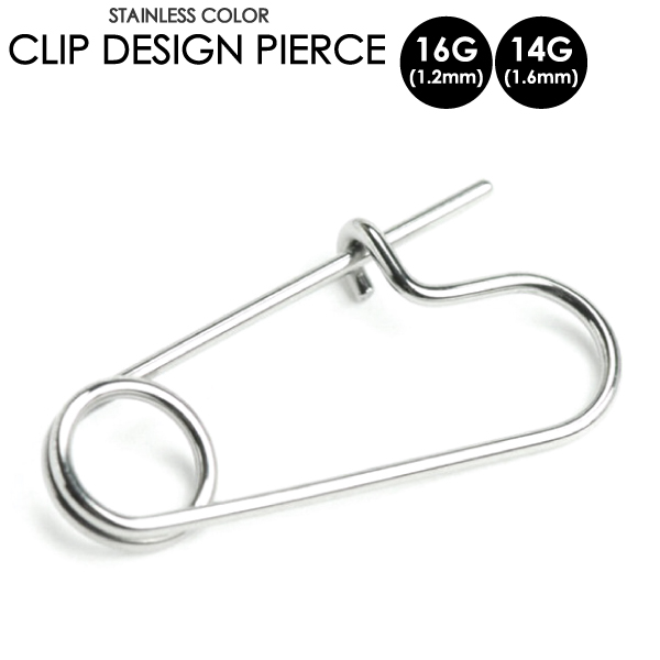 【メール便対応】クリップ Bタイプ CLIP 16G(1.2mm) 14G(1.6mm) ボディピアス サージカルステンレス316L ワンタッチ クリップデザイン 個性的 インパクト 軟骨ピアス トラガス イヤーロブ 14ゲージ 16ゲージ 安全ピン ┃