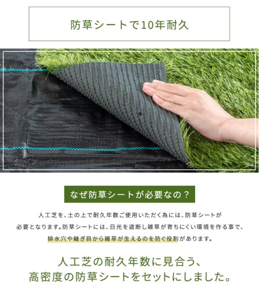 “10年使える”超高密度 防草シート付 人工芝 2m×10m 48本 セット 芝丈25mm U字ピン 10m 2m ピン 高耐久 リアル人工芝 52万本/m2 人工芝ロール 人工芝生 防草シート 屋上 ベランダ 庭 ガーデン 芝 芝生 おしゃれ [超大型商品]