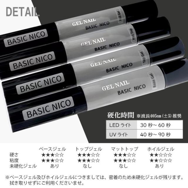 Basic Nico【選択1点】Basic Nico ジェルネイル ペン型 トップコート ベースジェル マットトップ ホイルジェル 各4ml おすすめ サンディング不要 ノンワイプ 拭き取り不要 転写ジェル