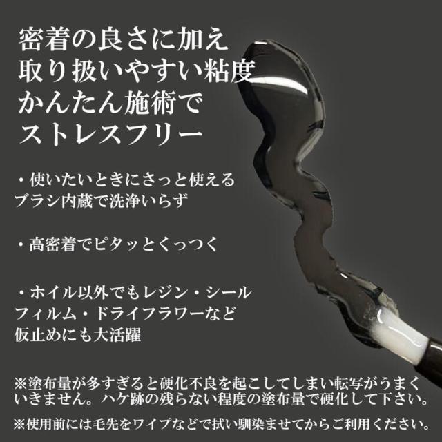 ホイルアートに必需品のホイルジェルは密着の良さに加え扱いやすい粘度により簡単施術!