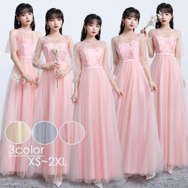 ドレス ロング 大きいサイズ 二次会 パーティー 結婚式 20代 30代 40代 ピンク グレー シャンパン ブライズメイド 体型カバー Aラインドレス フォーマル ミディアム 4タイプ 謝恩会 二次会 卒業式 発表会 演奏会