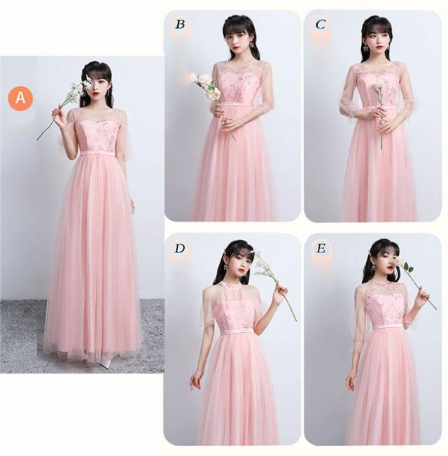 ブライズメイド ドレス ロング 大きいサイズ 二次会 パーティー 結婚式 体型カバー Aラインドレス フォーマル ミディアム 4タイプ ピンク グレー シャンパン 謝恩会 二次会 卒業式 発表会 演奏会 20代 30代 40代 ad079c0c0c9