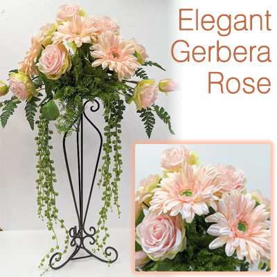 ●エレガント アイアン スタンド付き アレンジ ( ピンク ガーベラ ローズ ) 造花 [tba-3] 送料無料 95055