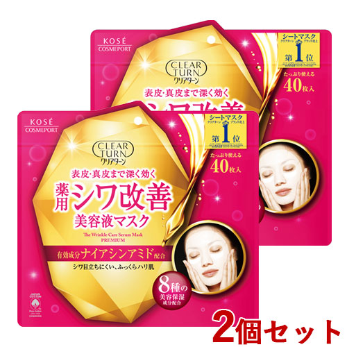 クリアターン 薬用シワ改善 美容液マスク 大容量 40枚入×2個セット シートパック シートマスク CLEAR TURN コーセーコスメポート(KOSE COSMEPORT)【送料込】