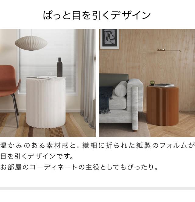 ペーパーテーブル、折り畳み、コンパクト、スリム、収納、56×63cm、伸縮式、伸び縮み、クラフト紙、アコーディオン構造、じゃばら、蛇腹、ハニカム構造、耐荷重50kg、高耐荷重、アクリル天板、アクリル板、紙製テーブル、紙テーブル、ペーパースツール、おしゃれ、北欧、モダン、撥水、防水、エコ、ノンホルム、安心、安全、組立簡単、簡単設置