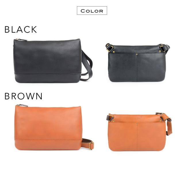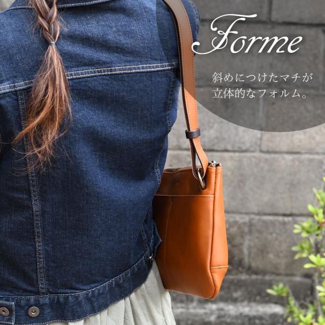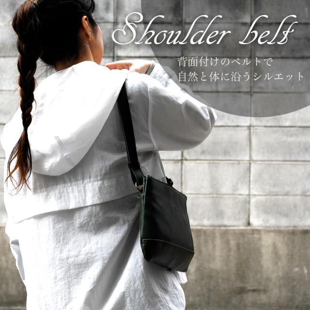 とことんシンプルなデザインだからこそ、上質な革の素材感が際立つサコッシュです。マチを斜めにつけることでふっくらしたラインの個性的な表情に。