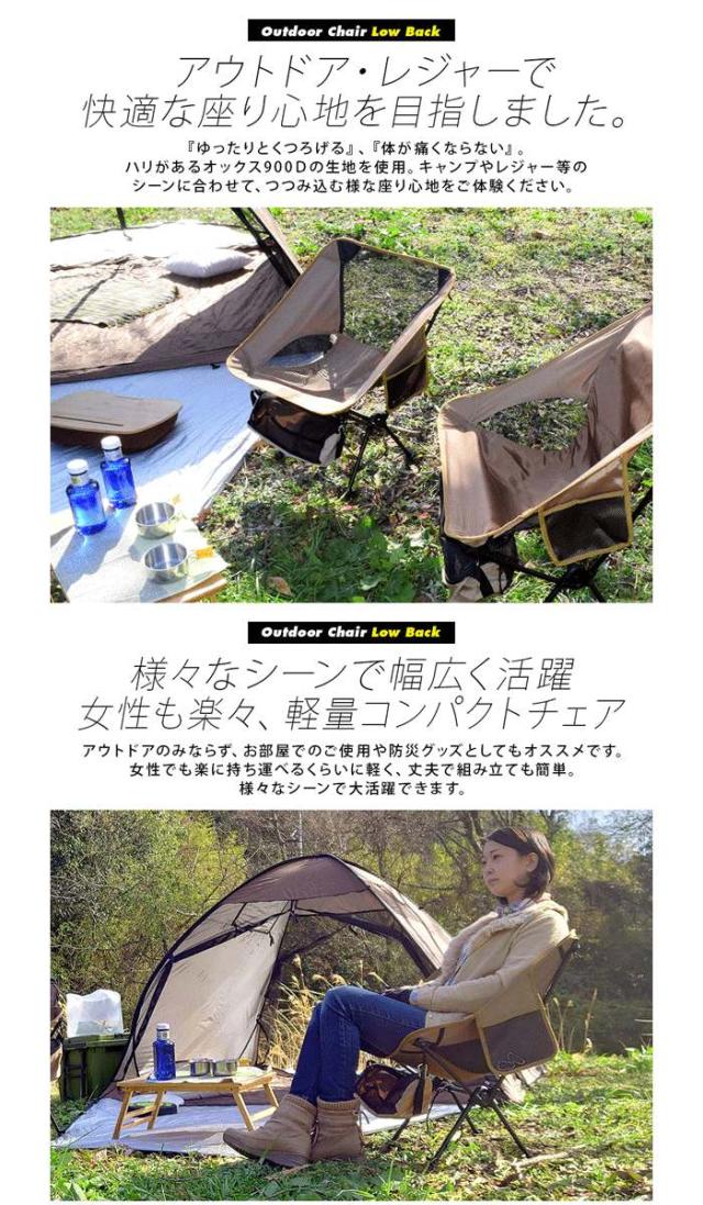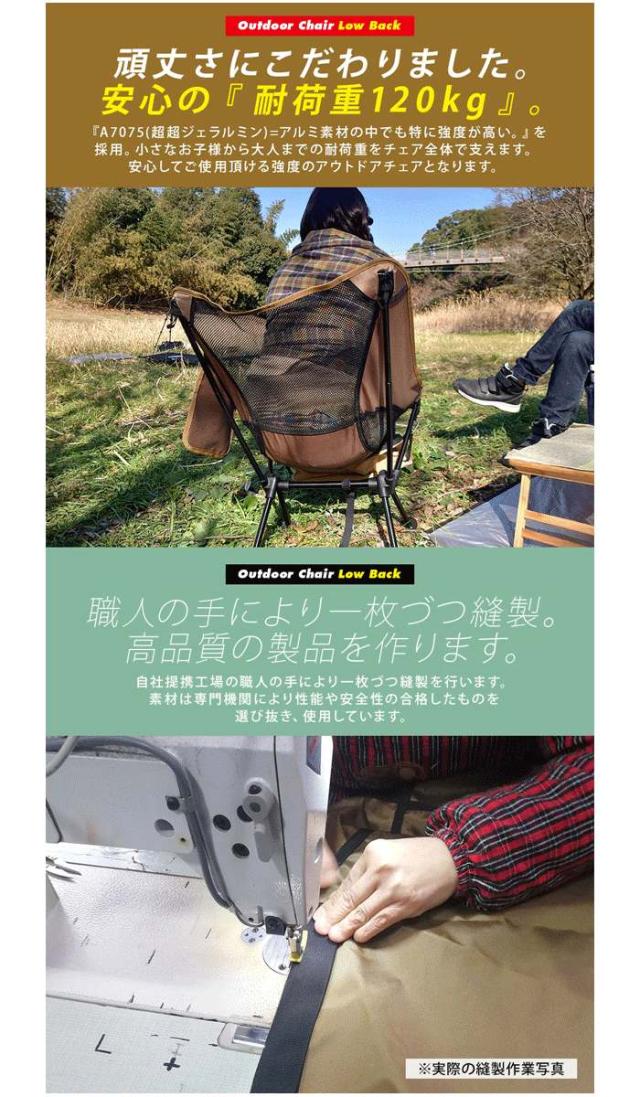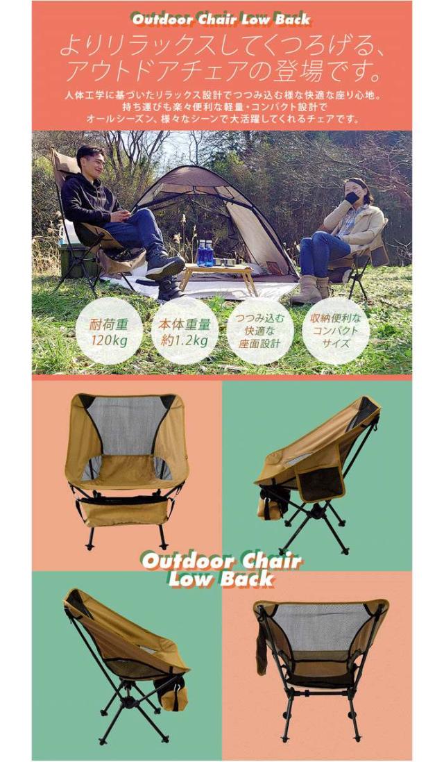■商品名:アウトドアチェア ローバック 軽量 折りたたみ コンパクト 耐荷重120kg キャンプチェア アルミ チェア 椅子 アウトドア 屋外