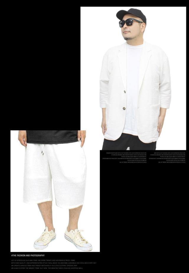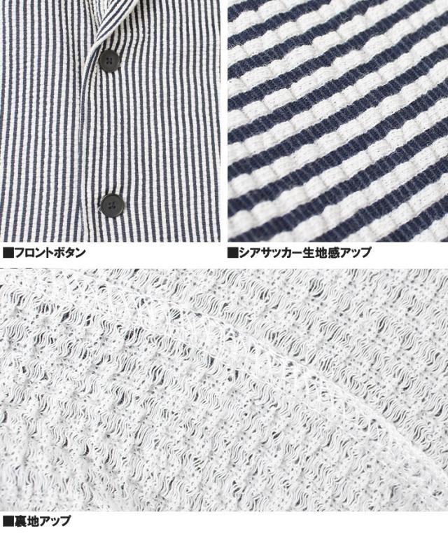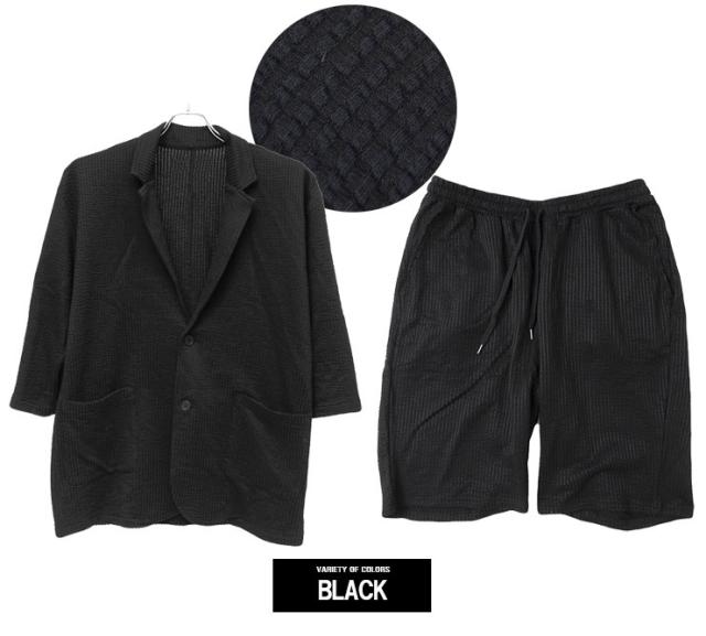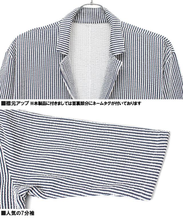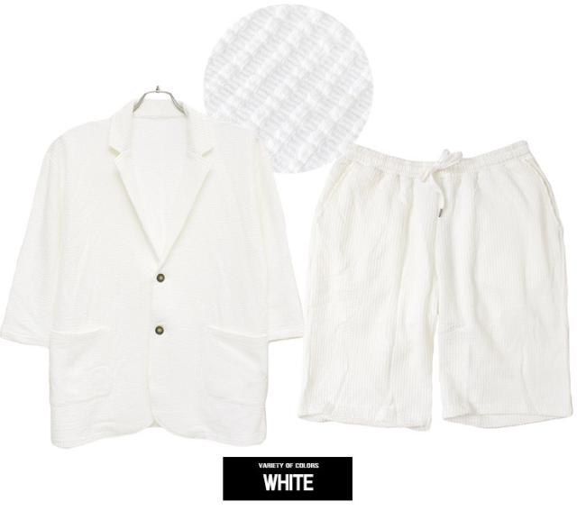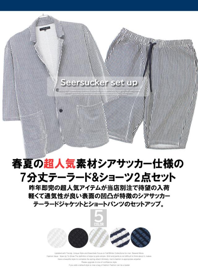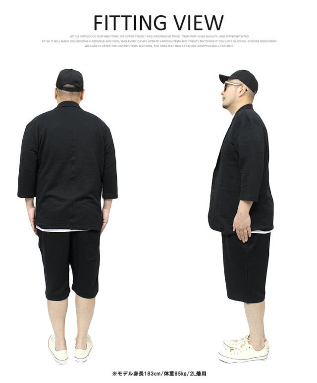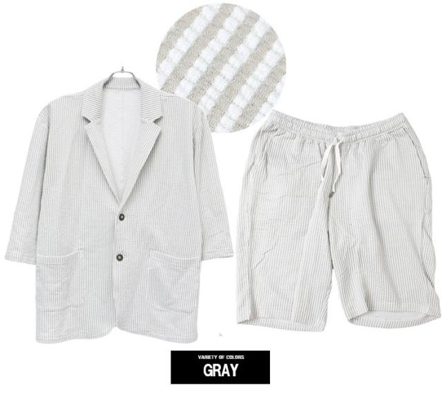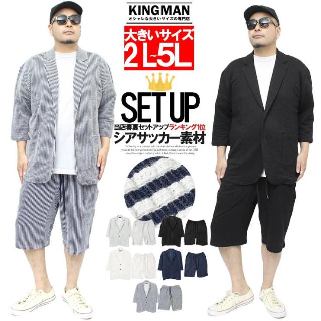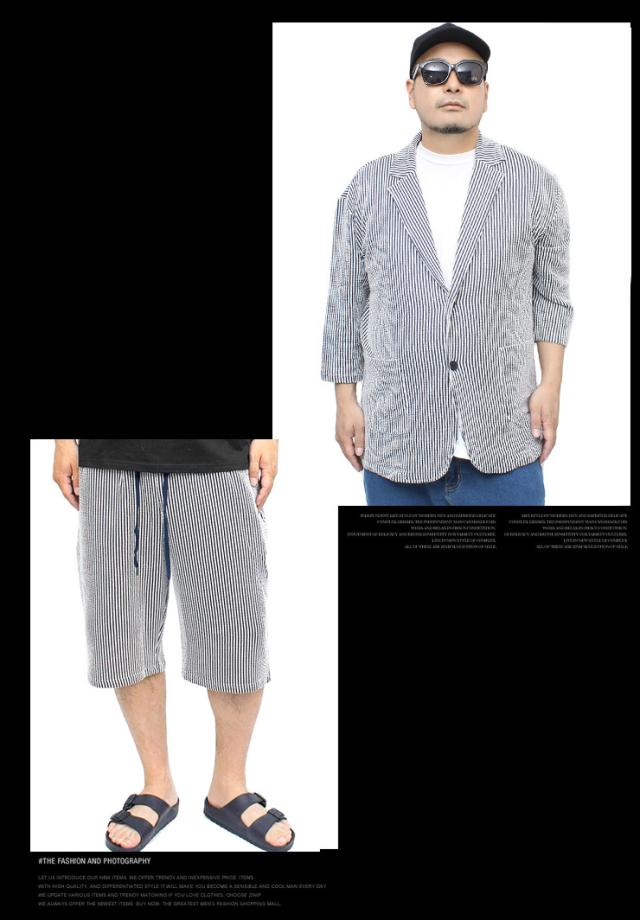 【送料無料】 セットアップ メンズ 大きいサイズ シアサッカー 無地 ストライプ 七分袖 テーラードジャケット ショートパンツ ジャケット ビジネス 伸縮 7分袖 7分丈 ハーフパンツ 短パン ルームウェア 部屋着 ジャージ ワークマン プラス