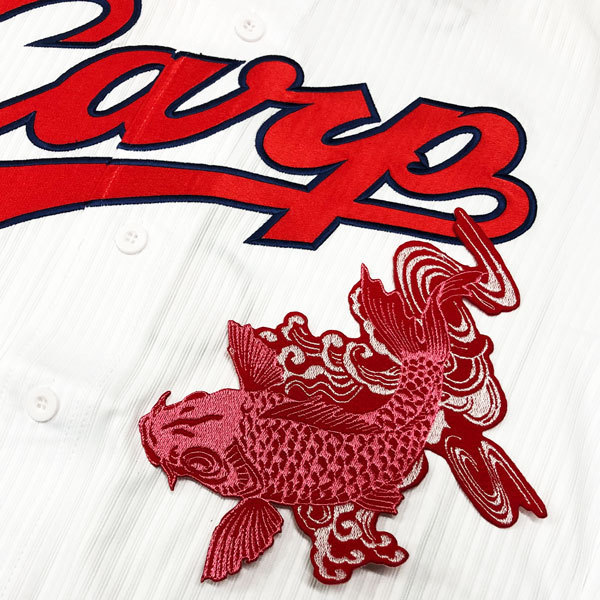 ★送料無料★広島 カープ 鯉 ピンク/白波-赤 左 応援 刺繍 ワッペン ユニフォーム