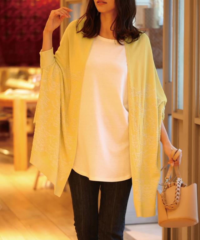 日差し・冷房対策にも大活躍。ジャカード編レースがポイントの個性派カーデ。