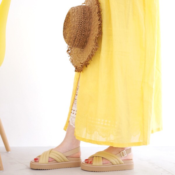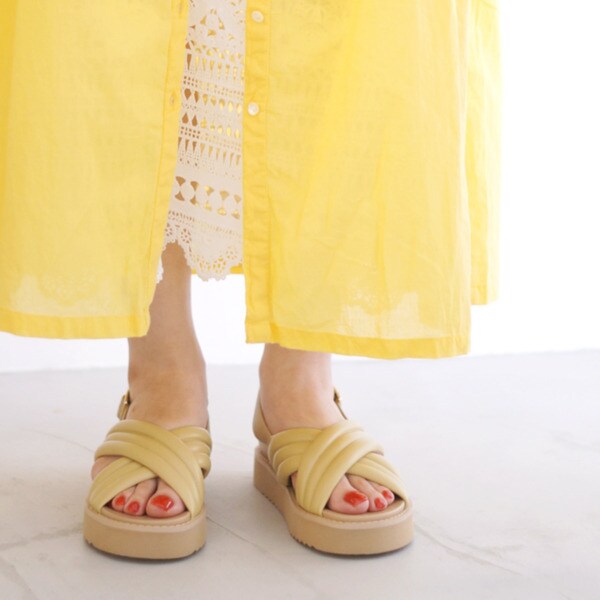 履くだけでトレンドルックを叶えてくれる「モードカオリ」のパデットサンダルです。