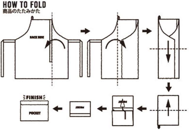 使わない時は折りたたむとポケット部分に収納できるので、アウトドアやお料理教室など様々なシーンで持ち運びに便利です。折りたたみ方はとっても簡単で、両サイドから折りたたんだ後、ポケット部分に折り込むだけです。ご自宅用にはもちろん、新生活を始められる方やお料理好きの方へのプレゼントにもおすすめです。