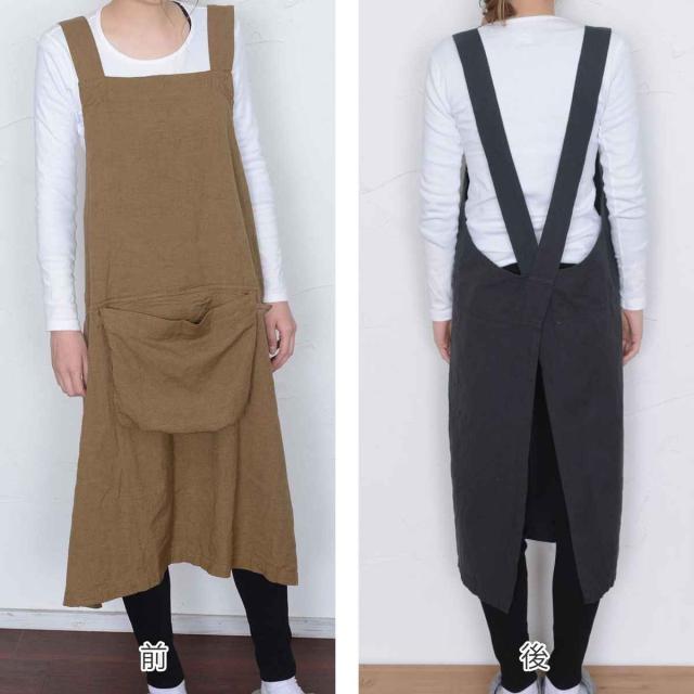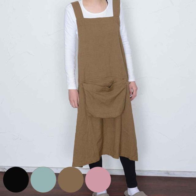 エプロン ポケット付き 無地 綿麻 ペールラップ ( kukugoto ククゴト 折り畳み収納可能 キッチンエプロン 台所エプロン 綿 麻 大人用 カフェエプロン カジュアルエプロン オーバーサイズ 男女兼用 キッチン用品 )