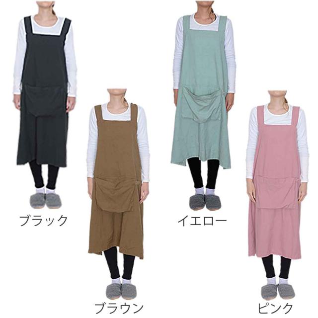バッククロスタイプで、紐を結ぶ必要がなく被るだけでいいので素早く楽に身につけられます。また、長時間つけいていても疲れにくいから作業やお料理がはかどります。
