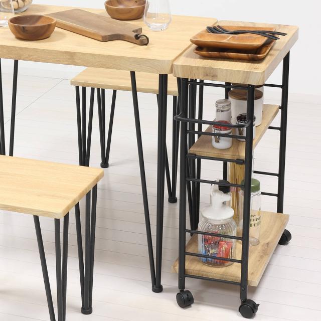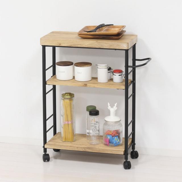 スリムで場所をとらないナチュラルテイストなキッチンワゴン