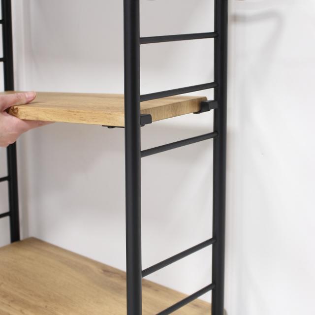中央の棚板は可動式で5カ所を移動でき、無駄なく収納していただけます。