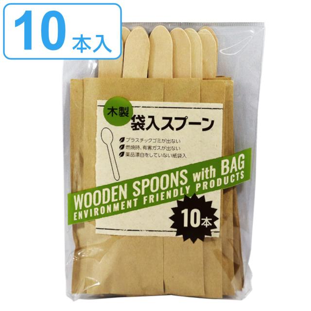 使い捨てスプーン 木製 袋入 10本入 15.8cm Green Select ( 使い捨て スプーン 木製スプーン 袋入り テイクアウト 持ち帰り ウッド 木 カトラリー ピクニック アウトドア おしゃれ )