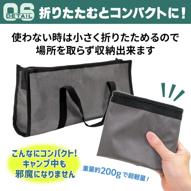 【折りたたむとコンパクト】使わない時は小さく折りたためるので、場所を取らずに収納できます。軽くてコンパクトなため、キャンプ中も邪魔になりません。