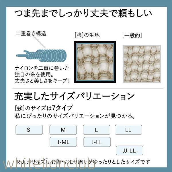 ATSUGI【強】破れにくいストッキング。タフで破れにくい。どんなシーンもアクティブに。丈夫で頼もしい。アクティブに過ごす日も1日中快適!!はいた時の美しさをそのままキープできるので、毎日たくさん歩く方やアクティブな方におすすめです。つま先丈夫な補強トゥ。ゆったり(JJサイズ)は前後マチ付きでさらにフィット。はきたいストッキングが一目でわかるオリジナルバックマーク付。簡単に取り出せるワンハンドパッケージです。