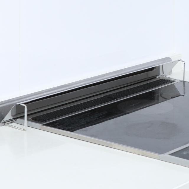 排気口が隠れることで、コンロ周りをシンプルにすっきりと見せてくれます。余計な装飾のないスタイリッシュなデザインで、洗練されたおしゃれなキッチンを演出します。