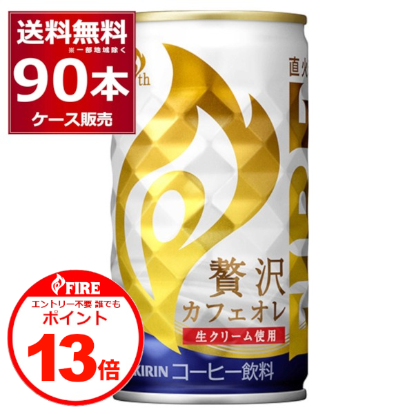 エントリー不要 誰でもP13倍 4/30 9:59まで 缶コーヒー 珈琲 送料無料 キリン ファイア 贅沢カフェオレ 185ml×90本(3ケース)[送料無料※一部地域は除く]