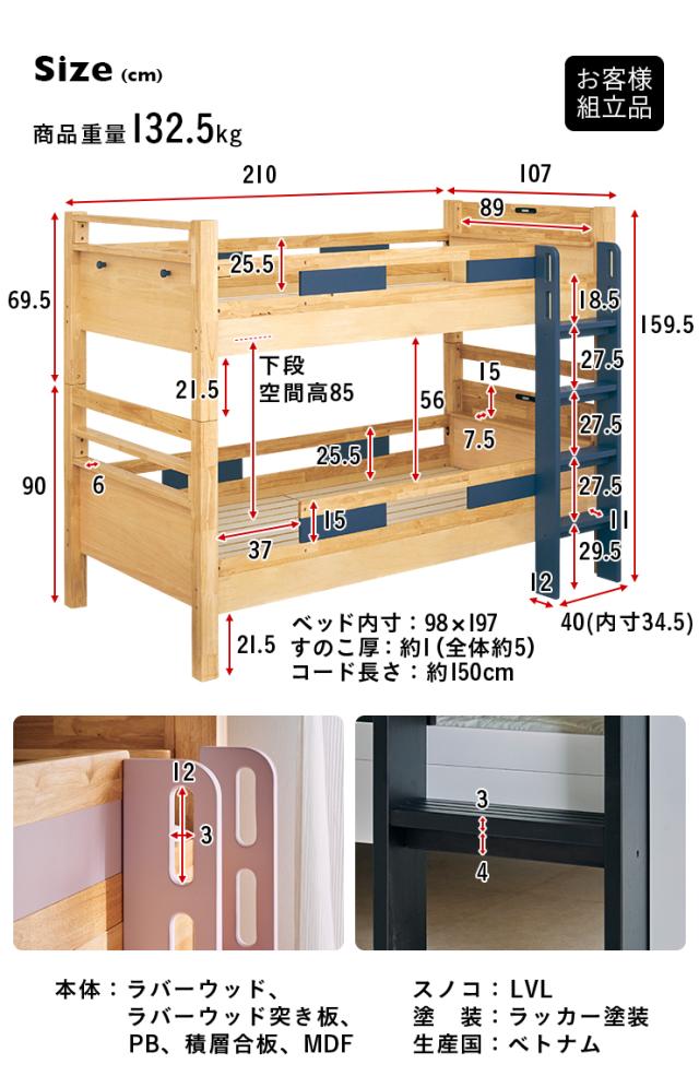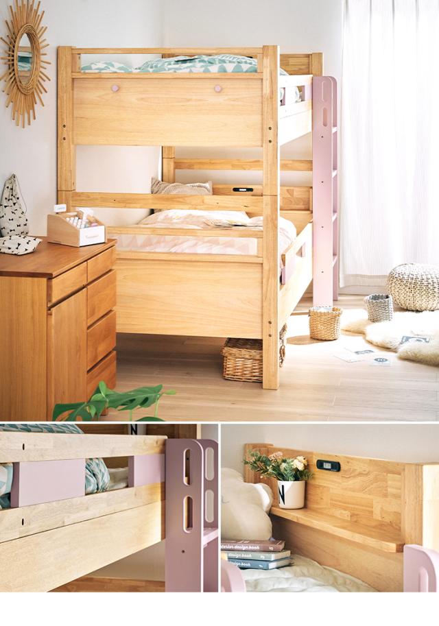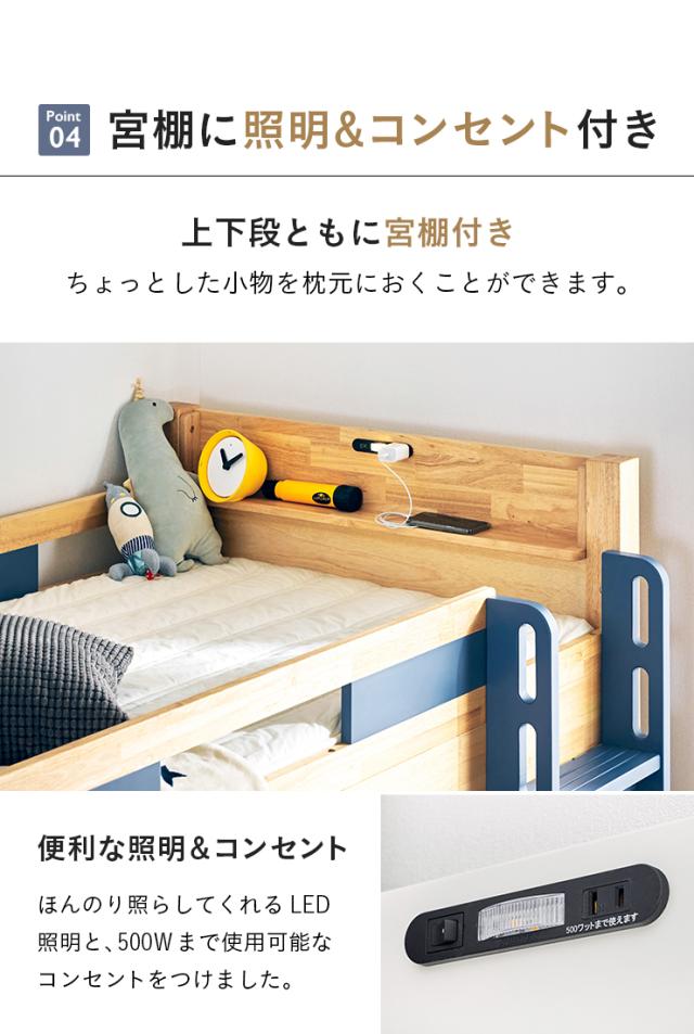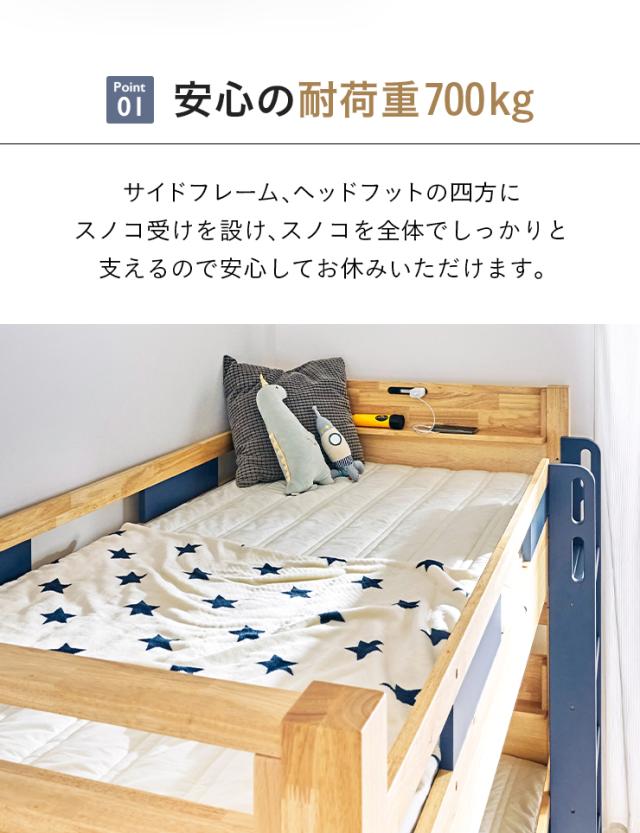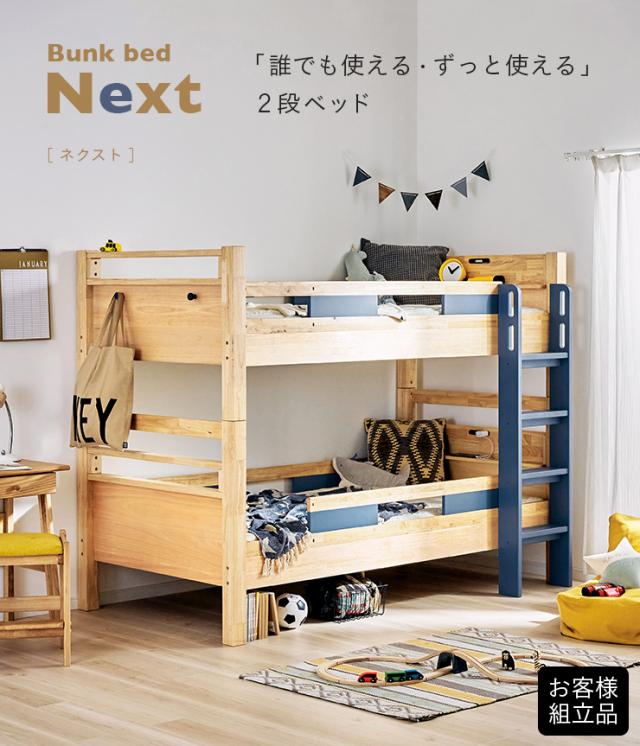 【耐荷重700kg/耐震設計】宮付き 二段ベッド 2段ベッド 二段ベット 2段ベット コンセント付き 子供用ベッド 大人用 ベッド 分割 分離 シングルベッド 木製 子供部屋 おしゃれ Next(ネクスト) 4色対応