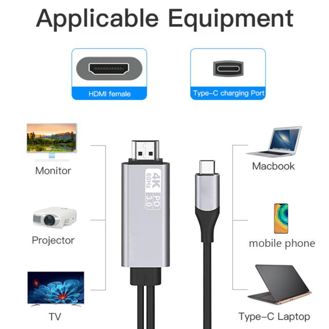 --USB TypeCオス-HDMI互換4K60Hz回転コンバーターアダプターケーブル、USB PD 3.0メス電源コード付き、携帯電話HDTVプロジェクター用。