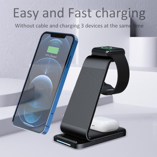 3 In1携帯電話用ワイヤレス充電器ヘッドセット時計ワイヤレス充電スタンド