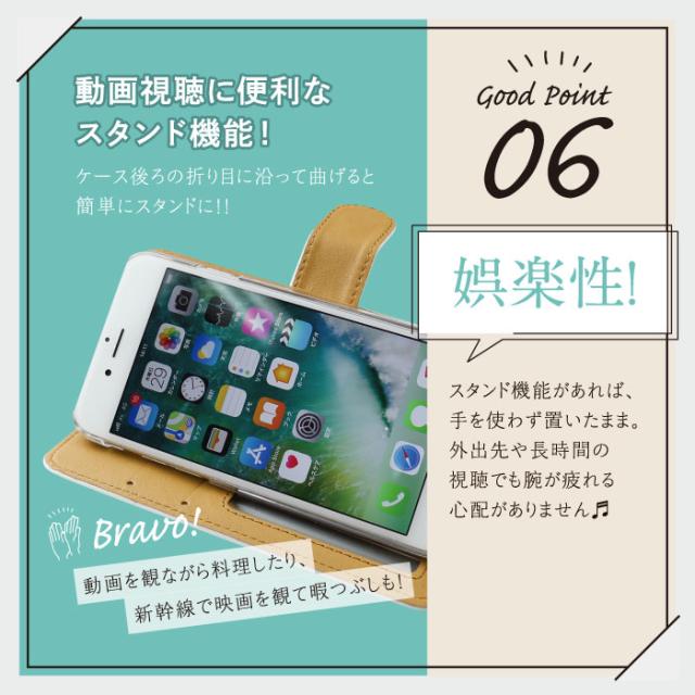 手帳の裏側にある溝に沿って曲げていただくことで、スマホスタンドとしても使用可。