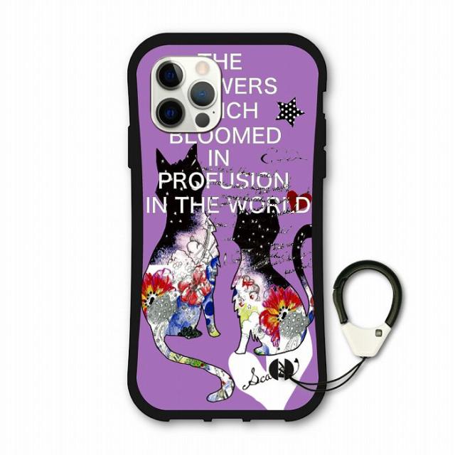 スカラー scolar iPhone 17e ケース 耐衝撃 i-coronケース アイフォン iPhone17 iPhone 16e 16 15 14 スマホケース カバー 猫柄 フラワー模様 パープル かわいい iphoneケース iPhone8 Plus iPhone7 Plus 保護ケース 衝撃吸収