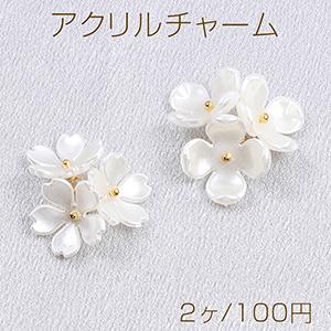 アクリルチャーム 3連フラワーチャーム パール風チャーム ホワイト