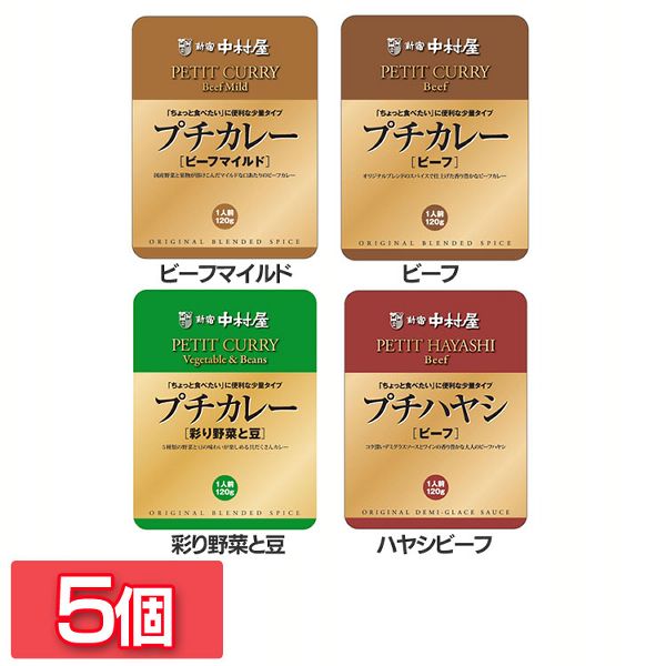 【5個】プチカレー・ハヤシビーフ 新宿中村屋 全4種類 中村屋 食品 レトルト レトルトカレー カレー 小容量 プチ ビーフカレー 少なめ スパイス 野菜カレー ベジタブル