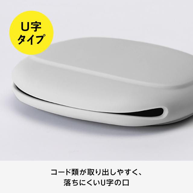 ケーブル類が取り出しやすく、落ちにくいU字の口。