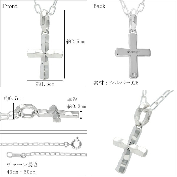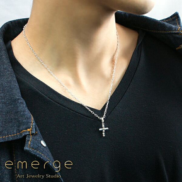 emerge エマージュ スモール ランダムエッジ クロス S ペンダント チェーン付き シルバーネックレス メンズ シルバー ネックレス ブランド